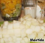 Дыню нарезаем кубиками, часть кубиков (где-то 1/2 стакана) убираем в сторонку