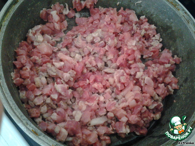 Итак, берем мясо (в нашем случае, это нежирная свинина) и режем на маленькие кубики (1 см). Можно мясо перекрутить, если лень с ним возиться, а время поджимает. =) -