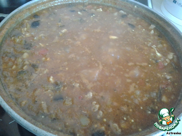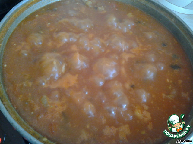 Когда все ароматы, наконец, смешались, подливаем горячей воды, чтобы образовался бульон, солим, перчим, кидаем несколько лавровых листочков, подсыпаем немного сахара, подливаем уксуса, обязательно пробуем, понимаем, что чего-то не хватает и добавляем всего еще по-немногу. =)