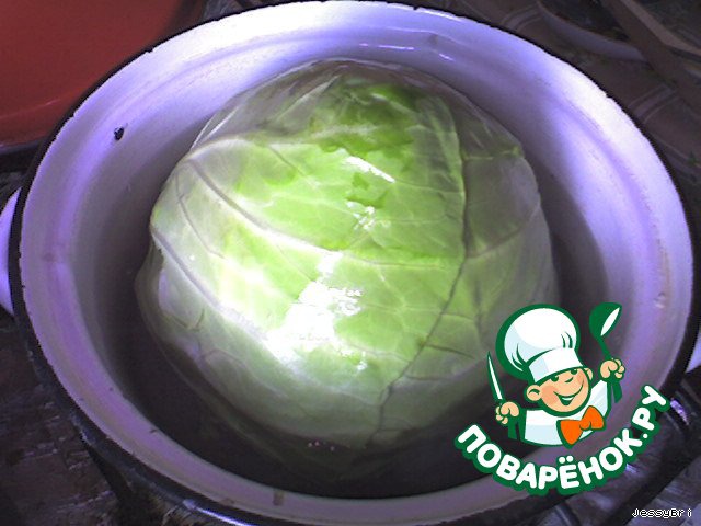 Опускаем капусту в кастрюлю с водой, накрываем крышкой и ставим на огонь. Даем покипеть минуты 4-5 (если капуста старая - до 10 минут) на маленьком огне