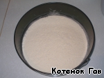 В смазанную маслом форму (d=20см) высыпать 1/4 часть пачки сухой смеси для кекса, разровнять.