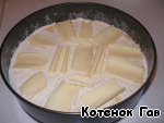 На верхний слой из сухой смеси нарезать сливочное масло тоненькими кусочками или натереть на терке.