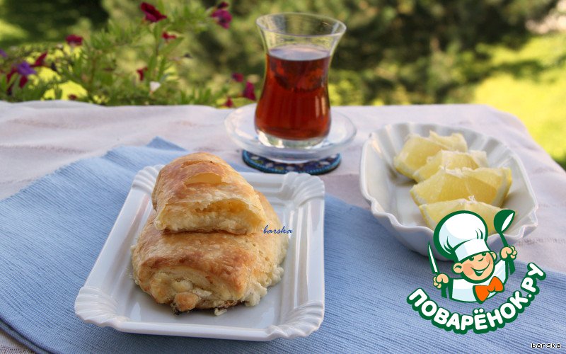 Воздушная, слоeная, слегка солоноватая выпечка с лимонным соком к утреннему крепкому сладкому чаю - это просто экстаз вкуса! Похожая выпечка встречается во многих средиземноморских странах. Этот рецепт я нашла на популярном немецком сайте, думаю, что он был представлен турками или теми, кто очень влюблeн в эту страну.
