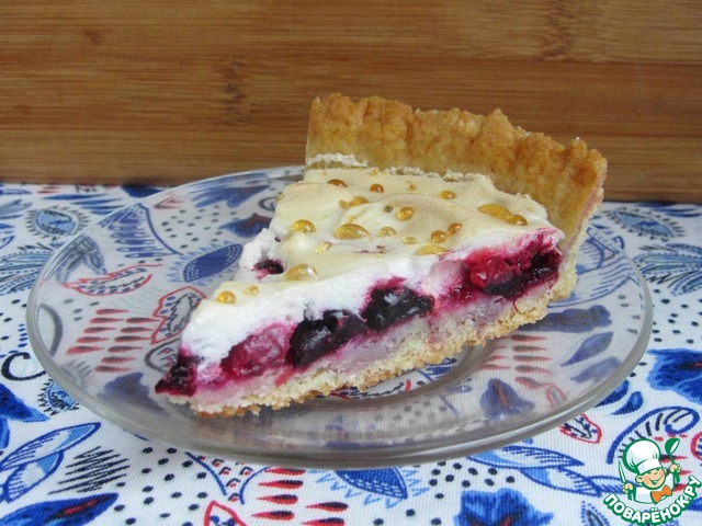 А мы займемся начинкой. Тут все просто. Белки взбить с сахарной пудрой и лимонным соком до острых пиков. Аккуратно смешать красную смородину с белками.