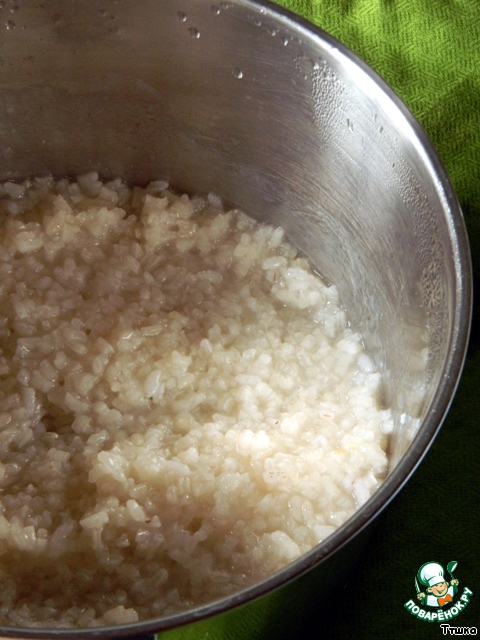 • 1/2 стак. риса хорошо промыть. Залить 2 стак. воды и варить на среднем огне