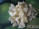 Положите в бульон промытый рис (забыла сфотографировать))). Затем нарезанный кубиками картофель.