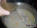 За 15 минут до готовности добавьте обжаренные в топленом масле лук, морковь.