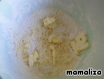 Приготовить тесто. Для этого смешать муку, соль, разрыхлитель, зиру и натертый пармезан. Все перемешать. Добавить сливочное масло, нарезанное мелкими кубиками.