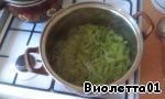Берём фасоль, кладём в глубокую посуду, заливаем холодной водой и оставляем минут на 5-7, чтобы отошел песок, ну и т. д. Далее сливаем воду с фасоли, еще раз промываем под струёй холодной воды из-под крана, потом берём фасоль и начинаем её ломать на небольшие кусочки. Затем берём кастрюлю, кладём туда всю поломанную фасоль и заливаем холодной водой так, чтобы вода покрыла фасоль. Варим минут 15, ну это примерное время, а, вообще, я пробовала на вкус, фасоль должна быть мягкой, готовой.