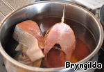 Рыбу разделим пополам. Часть для бульона, часть для запекания.