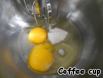 Яйца, сахар и соль взбиваем венчиком или миксером.