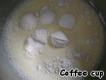 Влить молоко и добавляем муку перемешиваем тщательно, без комочков.