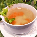 Или - в порционную тарелку добавляются манделах и также заливаются бульоном.