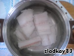 Рыбу (крупно нарезанную) залить водой, чтобы она полностью скрылась.