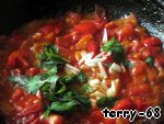 Выложить помидоры к перцу и тушить еще 5 минут.