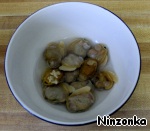 Мясо моллюсков положить в миску и немного полить сверху бульоном, в котором они варились, чтобы они не засохли. Оставшийся бульон процедить через двойной слой марли и оставить. Он нам пригодится.