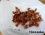 Затем бекон вынуть из кастрюли и положить на бумажное полотенце, чтобы лишний жир стек.
