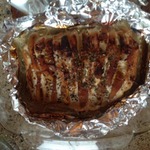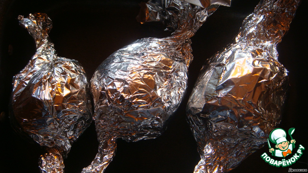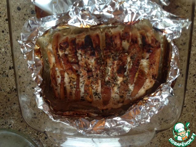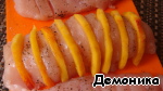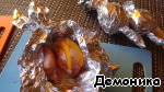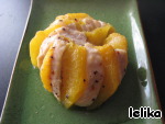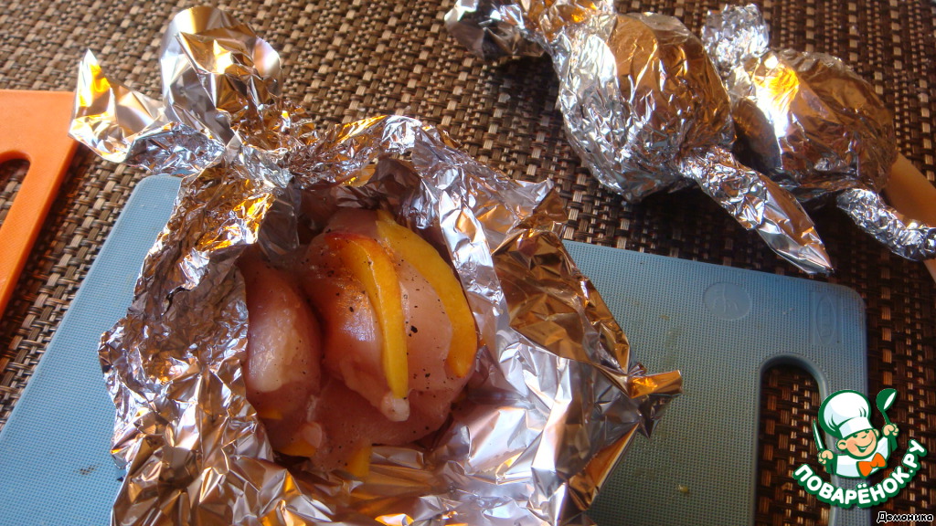 Свернуть филе рулетом, персиком наружу. Сформировать шарик, завернув аккуратно в фольгу, вроде "конфетки".