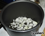 Лук почистить, порезать и выложить в кастрюлю. Добавить растительное масло.