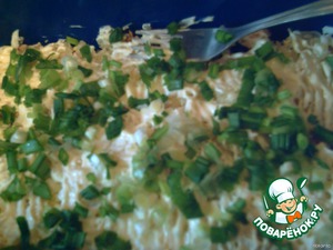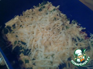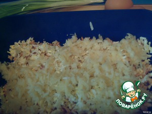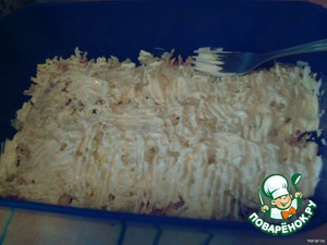 Присыпать тертым сыром(1/2 всей порции) ,и смазать ещё раз майонезом. Затем повторить все ещё раз.