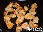 Положите в большую сковородку 1 ст. л. сливочного масла и 1 ст. л. оливкового масла, разогрейте на среднем огне. Положите куриные кусочки на сковородку. Жарьте порциями до золотистой корочки с двух сторон.