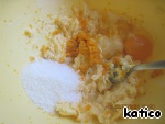 Добавила к ним яйцо, кокосовую стружку, апельсиновую цедру, хорошо перемешала.