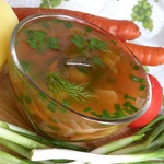 Как-то отдыхали мы в Абхазии, в курортном городке Гудаута. И хозяйка, у которой снимали комнату, угостила нас супом. На первый взгляд он показался очень скромный, но это до первой ложки... Приготовлен суп из свежих овощей, а вот ощущение такое, будто сварен на насыщенном мясном бульоне. Готовится молниеносно, как в сказке, сказал: "Горшочек варись" - и суп готов. Не надо ничего жарить, пассеровать, только овощи помыл, почистил, поварил, и суп готов.