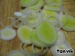 Овощи вымыть, почистить и обсушить. Белую часть лука-порея нарезать кольцами.