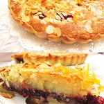 Рассыпчатая и хрустящая основа укрыта внушительным слоем миндального франжипана, сверху запёкшегося тончайшей корочкой. Пряный клюквенный джем уравновешивает до гармоничного баланс сладости и кислинки. А ниточки апельсиновой глазури, расставляя экзотические акценты, венчают это великолепие вкуса!