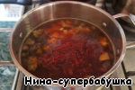 И специи по вкусу, довести до кипения и варить еще 5-7 минут. Выключить огонь, добавить пропущенный через пресс чеснок, накрыть крышкой и дать настояться 10 минут.