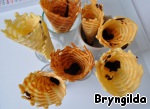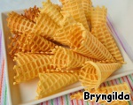 Пожарить вафли. После жарки надо свернуть вафлю в кулечек, так чтобы дырочки на тонком крае не было, или чтобы она была совсем маленькая. Свой агрегат для жарки вафель я не рискую показывать уважаемой публике, так как он очень древний, но работает исправно, и выбросить его рука не поднимается.
