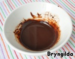 Шоколад растопим с ложкой молока и перемешаем. Дадим ему немного остыть.