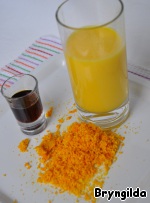 Выдавим из апельсинов сок. Припасем столовую ложку мякоти от апельсина, которая у нас останется после выжимания сока.