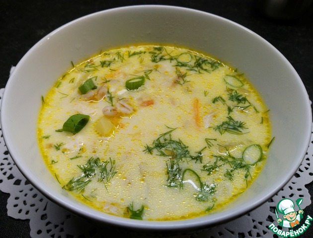 Сырный суп с перловкой