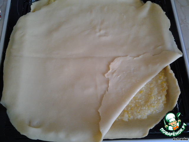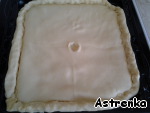 Выкладываем начинку на тесто в форме, оставляя пару сантиметров у краев, чтобы потом их завернуть.