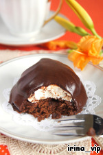 Сегодня не будет национальных пирогов и бразильских народных десертов с не подлежащими запоминанию названиями. Сегодня всe просто. Пирожное с основой из шоколадного теста с зефирной шапочкой, покрытое шоколадной же глазурью. Тот случай, когда использование в условиях домашней кондитерской готового кондитерского изделия сокращает общее время приготовления и оптимизирует результат.