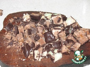 Конфеты или шоколад порезать небольшими кубиками. И вмешать аккуратненько в тесто.