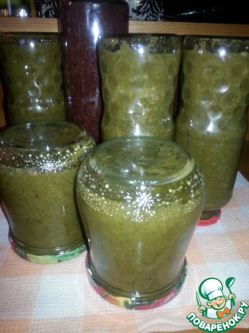В такую массу добавить соль, сахар, перец, зелень и чеснок, размешать и проварить 10 минут и разлить по бутылкам.