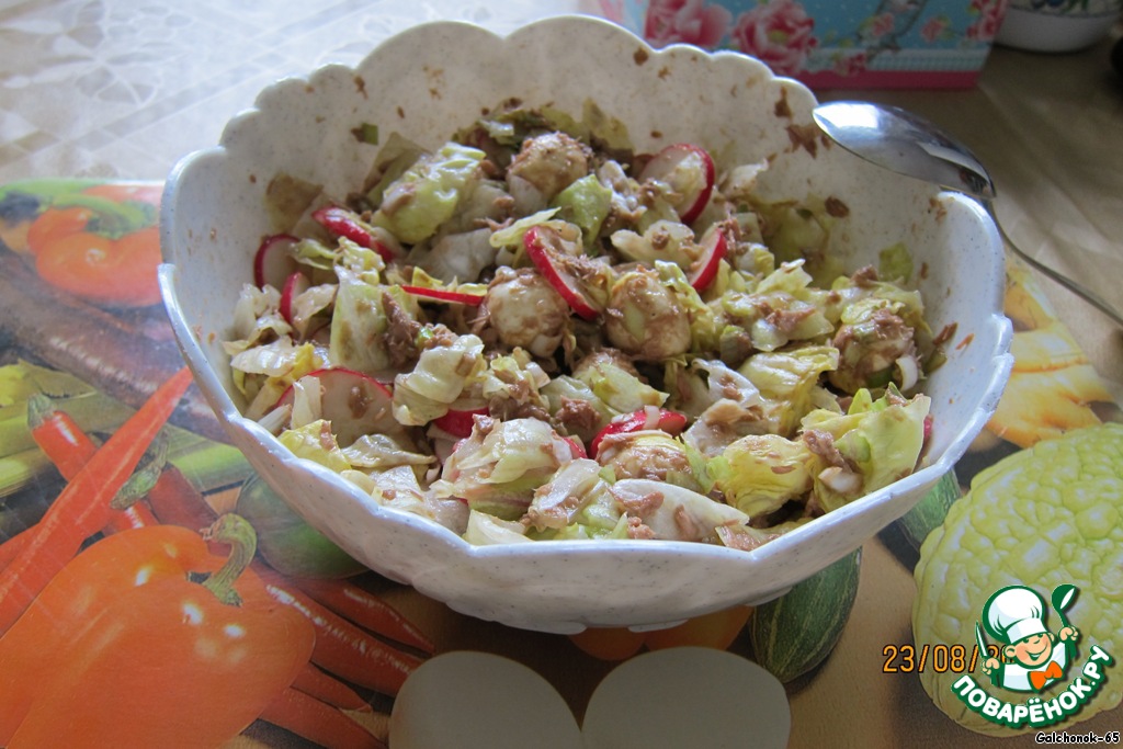 [+4]Приятно удивила заправка с луком. Лук в таком виде совсем не угадывается, ни по вкусу, ни по запаху. Ниночка, спасибо, буду ещё делать такой салатик!