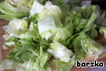 Нарезать крупными квадратами половину большого кочана айсберг-салата.