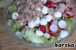 Сцедить от жидкости консервированного тунца и моцареллу.