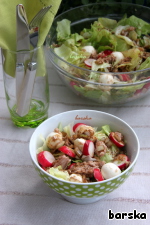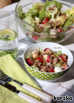 Лето пока ещe в разгаре, и я продолжаю пробовать интересные салаты, сочетания и, конечно, заправки к ним. Предлагаю вашему вниманию только самые интересные, с моей точки зрения и вкуса. Нежный вкус этого салата меня очень удивил. Поcвящается хозяйке этой сладкой "звeздной недели" Ирочке irina_vip.