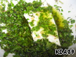 Зелень мелко нарубить (укроп, петрушка), смешать с оливковым маслом, добавить соль, перец по вкусу. По желанию добавить сушеную зелень, например базилик, прованские травы...