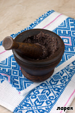 Воду слить и растереть мак в ступке до появления белого молочка. Помню, моя бабушка всегда растирала мак в деревянной макитре, и вкус у этого мака был настоящий, ароматный, каждое маковое зернышко обладало вкусом, больше нигде и никогда я такой начинки не ела. Я по натуре человек ленивый, несколько раз ранее пыталась промолоть мак в кофемолке, но начинка, приготовленная таким способом, сильно проигрывает во вкусе той, которая растерта в ступке, поэтому, вздохнув: "Ох, грехи мои тяжкие!", достаю ступку и беру в руки пестик.