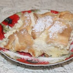 О, вспомнила! Я, когда после нарезки крема на полоски, начала его на полоски бисквита выкладывать, он начал "растягиваться" в длину (крем после затвердевания не стал "резиновым", а был такой нежный и деликатный) и я полоску крема, целиком предназначавшуюся на пирожное, делила пополам. Вот и хватило на весь бисквит.