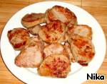 Выходной день, 32 градуса. Мы не привыкли к такой жаре. Целый день хочется пить квас и только квас. Сыновья лениво бродят по квартире в плавках, не зная, куда себя деть, и я в купальнике. В общем, чуть живые. Даже наш любимец Джекуня не лежит, как обычно, на кровати или на кресле, валяется в прихожей на полу с поднятыми кверху лапками и высунытым языком, часто дыша. И тут мл. сын спрашивает: "А мы есть сегодня будем?" Мозги от жары отупели или расплавились. Открыла холодильник, в глаза бросилась упакованная свиная вырезка. Решила из еe быстро, без заморочек приготовить то, что Вы тут видите. Странно, но сил хватило и на фотографирование. Ст. сын был сильно удивлен, увидев меня с фотиком: "Елe живая, а фотоаппарат всегда в руках"...