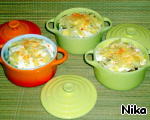 Уже в горячую духовк поставила все три кокотницы под раскалённую спираль гриля на 7 - 10 минут ( нужно смотреть, чтоб не подгорело).