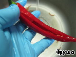 Перцы моем, осторожно разрезаем ( я делаю это в перчатках) и вынимаем семечки. Добавляем их в кастрюлю.