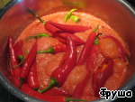 Кипятим смесь минут 20-25, пока у перцев хвостики не станут мягкими.