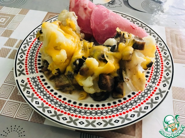 Рецепт «Цветная капуста, запеченная с сыром и грибами»:
